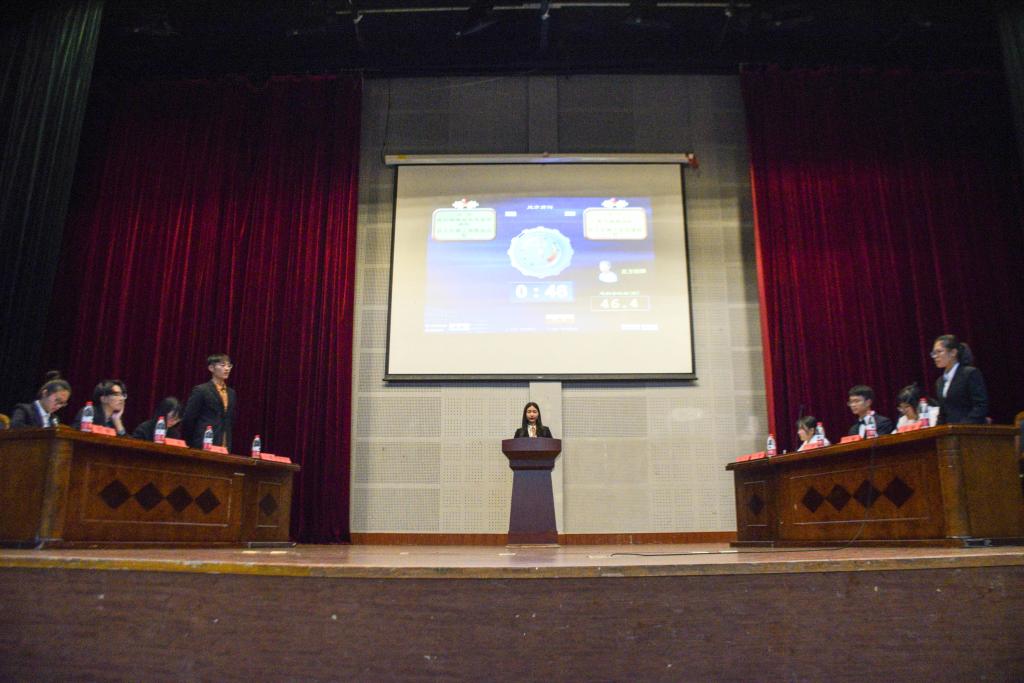 本次交流赛共分为两场。辩论双方开展了激烈的辩论,首先是由双方一辩立论,陈词明朗、立场明确,引经据典。随后双方四辩就对方一辩的论点进行质询,回答中肯、反驳更是有力,两方质询唇枪舌剑,互不相让。在自由辩论期间也将本次辩论赛推向高潮,一方从容自若、口若悬河,另一方也毫不逊色、滔滔不绝,双方各据一势、互不相让。紧张而又紧凑的比赛气氛牢牢的把握住在场的每一位同学的心。总结陈词环节双方再次引例,表达本方观点指出对方辩论漏洞,辩手们精湛的辩论技巧令观众们赞叹不已,也感受到辩论赛的激烈。