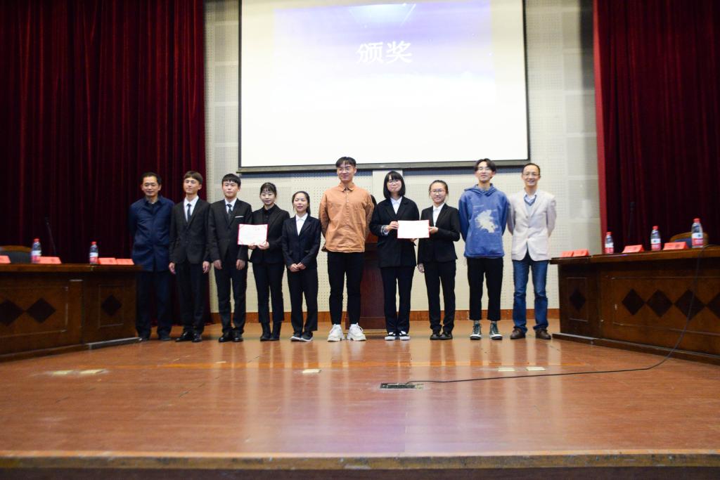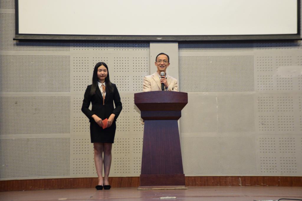党委副书记王辉、团委书记刘静、团委艾芮玄,外国语学院张亚暾老师,出席本次交流赛并担任评委。